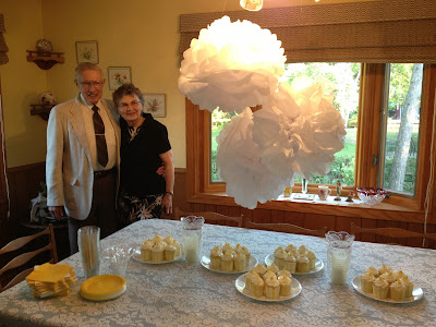 A small portion of this family (the ones that could get time off work and who don't live scattered across the planet) gathered a couple weeks ago to surprise my wonderful grandparents in a celebration of their love. Their children took them to dinner, and while they were there, a small group of my cousins and I set out desserts and a couple decorations for when they returned. It was the last in a string of surprises that week, including spontaneous visitors and world travelers. Good times were had by all.